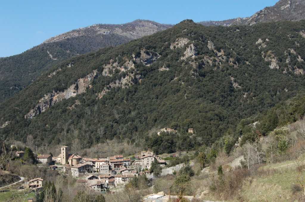 Descripció itinerari: 0,00 h. Poble de Beget, 610 metres, essent davant de la plaça de l’església hi trobem un rètol indicador, traspassem el pont i anem pel marge esquerra del poble, en direcció E-N.E. pels carrerons que guanyen alçada vers a les afores d’aquesta petita i entranyable població.