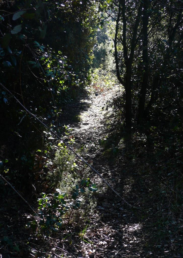 continuem tot recte, pujant pel mig del bosc per una mena de pista abandonada.
