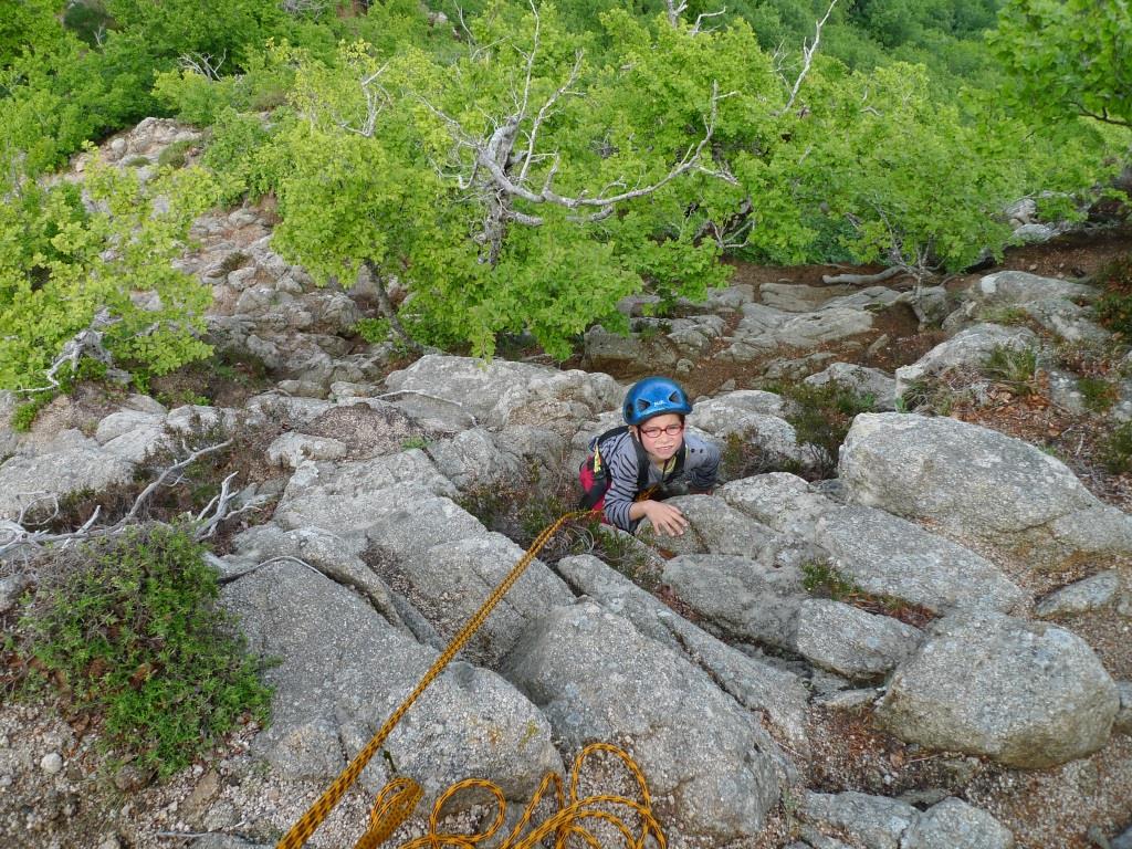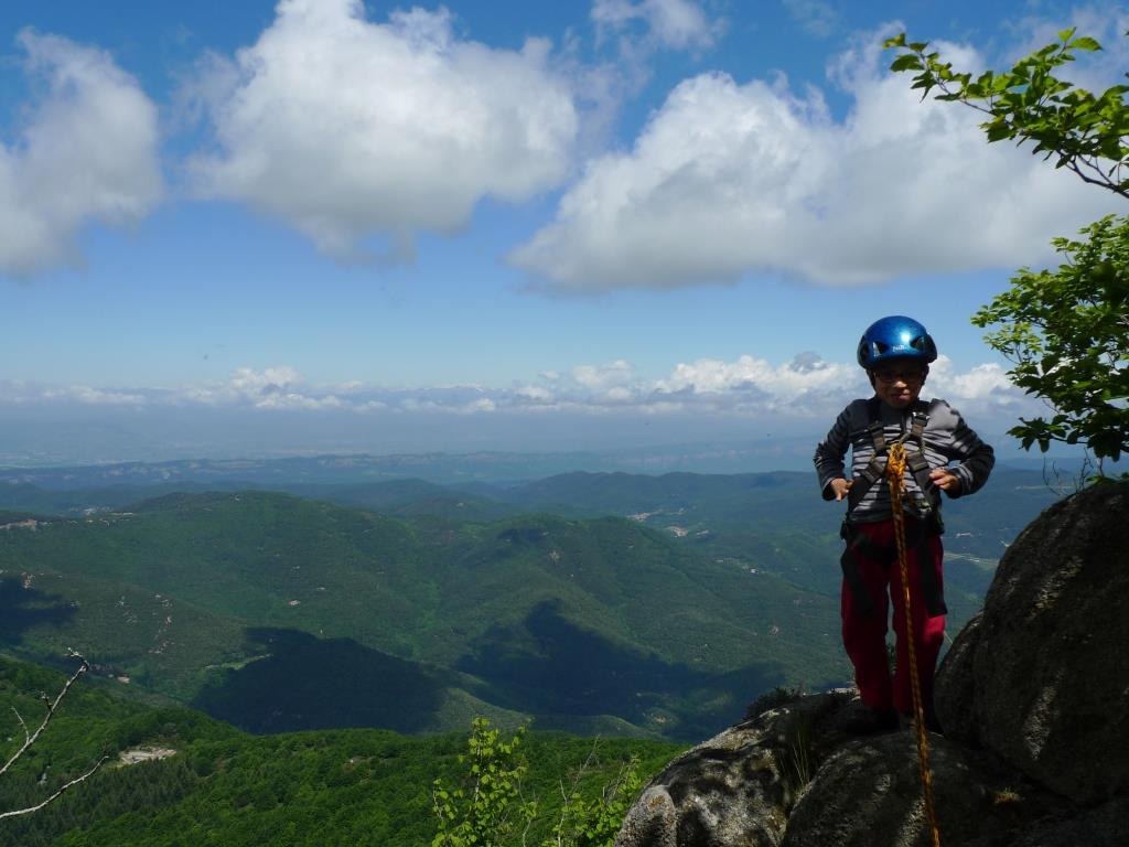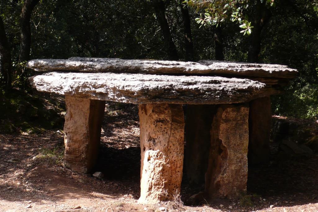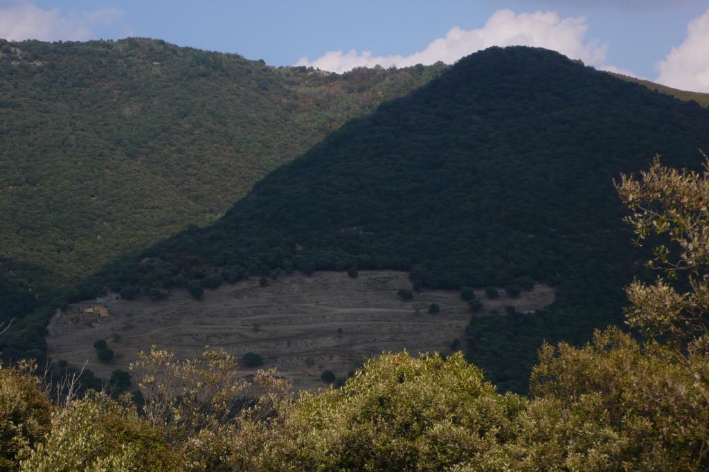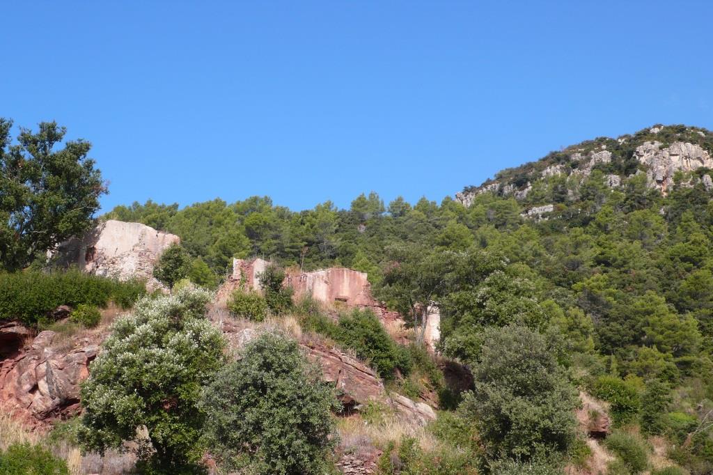 Itinerari: La mateixa pista que ens ha dut a les portes del càmping continua força ample, ja que es la via d’accés a les canteres. Es tracta d’una pista tan ample com una carretera i coberta sempre d’un llit de un o dos dits de pols. Quan ja transit de camions cap a la cantera la situació es força desagradable, pels grans aixecaments de pols que genera el transit de vehicles pesats. Al 5 minuts trobem una primera bifurcació cap a un cantera o cap a un altre, nosaltres prenem els trencall de l’esquerra que es el que es desprèn en direcció a la cantera Jaume Vila. Continuem l’ample pista que dibuixa un gran revolt. Quan portem 15 minuts de marxa i trobarem un trencall que surt del marge esquerra de l’ample pista. Es tracta d’un camí ben marcat que al poc sembla una pista abandonada. Nou trencall cap a la dreta, fita indicativa (0,25 h). El camí que surt d’aquí te taques grogues i puja directa pel mig del bosc fins a pujar dalt de la cadena. Passem uns grenys de roca, el terreny es boscós però de vegades presenta trams oberts amb bones panoràmiques. Els grenys de roca no presenten mai la més mínima dificultat. Camí fressat. Taques grogues.