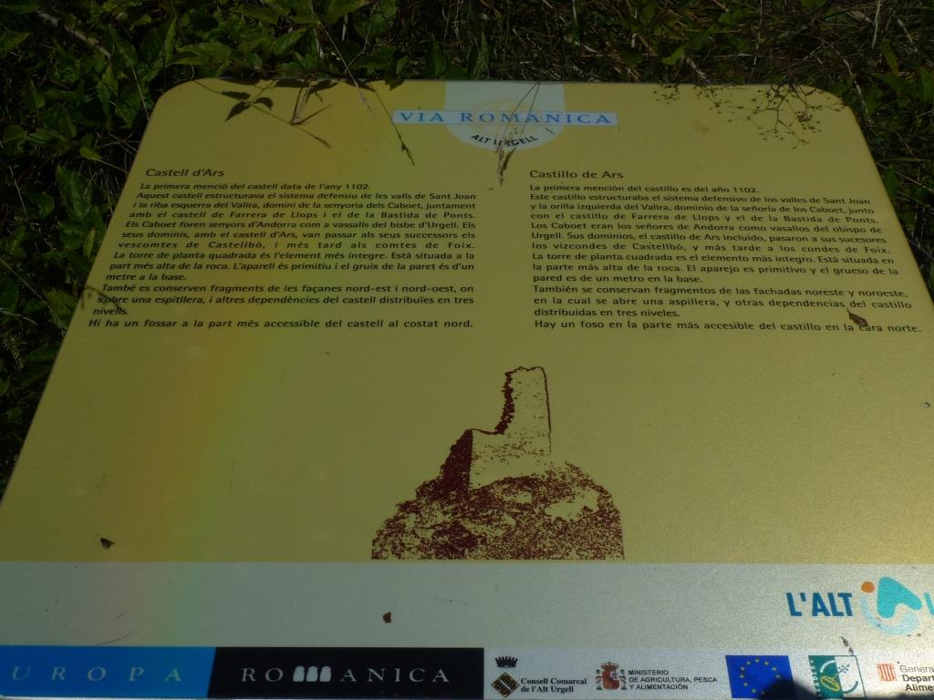 Km. 4,2 – Passem pel costat de la curiosa roca foradada de l’Areny. Foto obligatòria. Seguim el camí ben fressat pel mig del bosc vers al S.S.E. ve ara un llarg tram planer on la senda ben marcada discorre pel mig del bosc. Marques esporàdiques de P.R: Estem a la part alta de les Moletes d’Arany, on la cota màxima puja als 1.242 metres. No obstant la manca de panoràmica per la pròpia existència del bosc, el fet de que tot plegat es molt planer i que no hi ha cap fita ni indicador del punt més alt, fa que sigui molt fàcil passar-hi sense adonar-nos de que hi som al punt culminant de la serra. Seguim la marcada senda sempre cap al S.E. i desprès cap a l’est, en el moment ja que tornem a perdre alçada.
