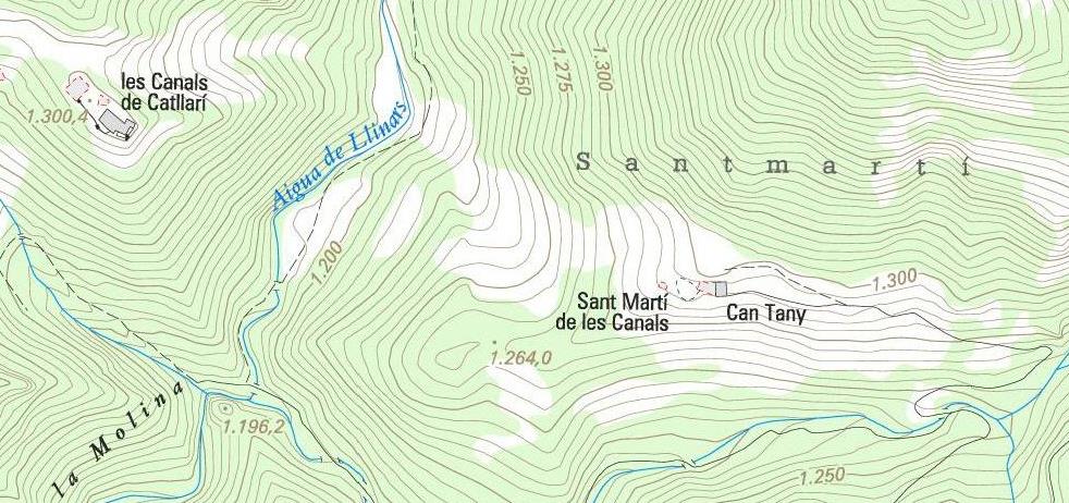 L’antiga església de Sant Martí de les Canals de Catllarí, que fou sufragània de la parròquia de Sant Iscle de Llinars de l’Aiguadora (havia estat parròquia independent fins al segle XIV); és una petita església romànica d’una sola nau, amb la volta esfondrada, i que té un absis semicircular a llevant. L’any 1374 s’hi van fer reformes. A mitjan segle XIX es va enguixar l’interior i s’hi col·locà un retaule neoclàssic que s’ha perdut. El lloc és esmentat al segle XIII i posteriorment formà part del municipi d’Aguilar, l’Hospital i Catllarí.