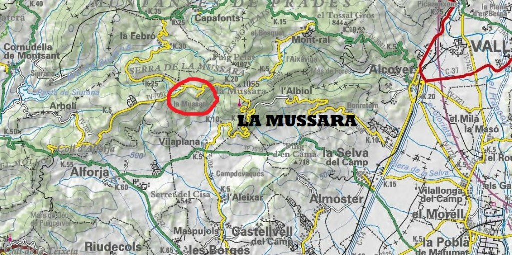 La Mussara és un despoblat actualment agregat a Vilaplana (Baix Camp). Es troba a la serra de la Mussara, a les Muntanyes de Prades, a 990 metres d’altura, a tocar del cingle de les Airasses, des del qual es gaudeix d’una impressionant vista del sud del Camp de Tarragona. La part mes alta del terme és a 1071 metres sobre el nivell del mar.