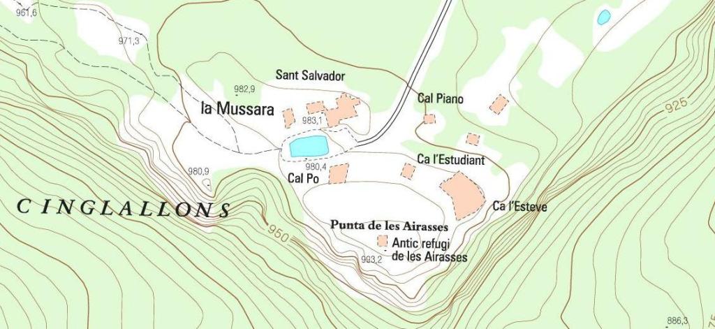 Quan plou, l’aigua queda retinguda a l’únic carrer que té el poble i és per això que la gent del lloc eren anomenats ranes.Al cingle de les Airasses hi ha un refugi d’excursionistes, construït el 1926. Més amunt del poble hi ha una petita urbanització de construcció recent, amb tres o quatre xalets, anomenada els Motllats, que no ha prosperat a causa dels mals accessos i la manca d’aigua.