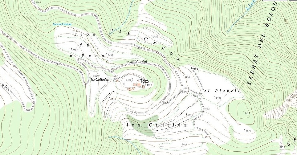 Nucli urbà: Els coneixements que tenim d’aquest vilatge abandonat provenen de la publicació de les dades obtingudes arran de la prospecció i l’excavació que s’hi feren l’any 1971, dirigides per M. Riu. Aquest poble rònec tenia una longitud, d’est a oest, de 84 m i una amplada de 24 m. Era situat al cim d’unes roques.