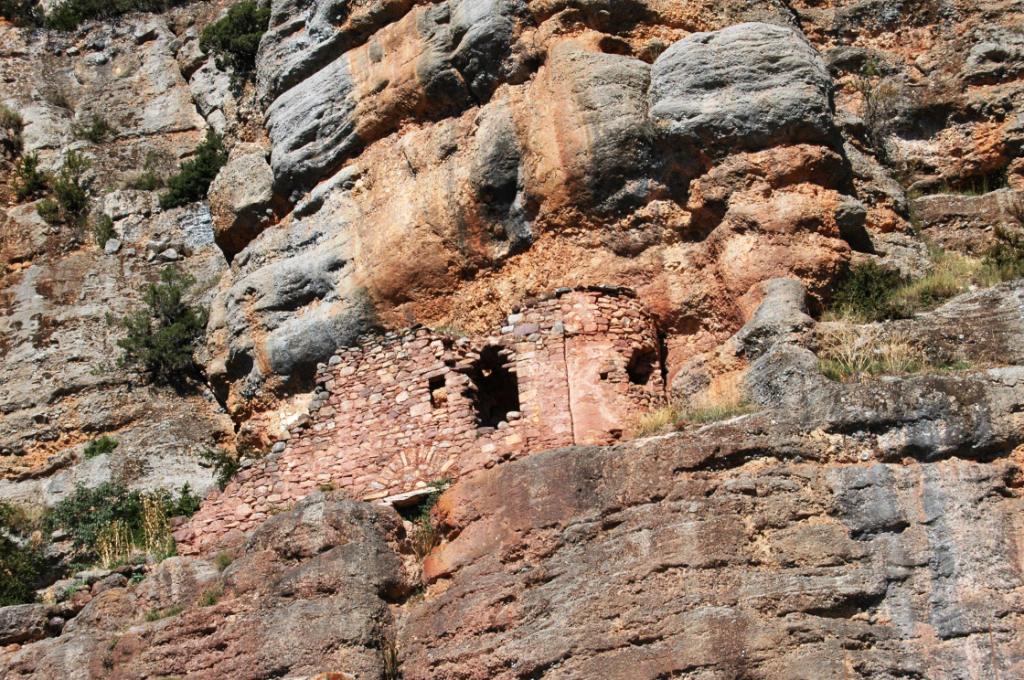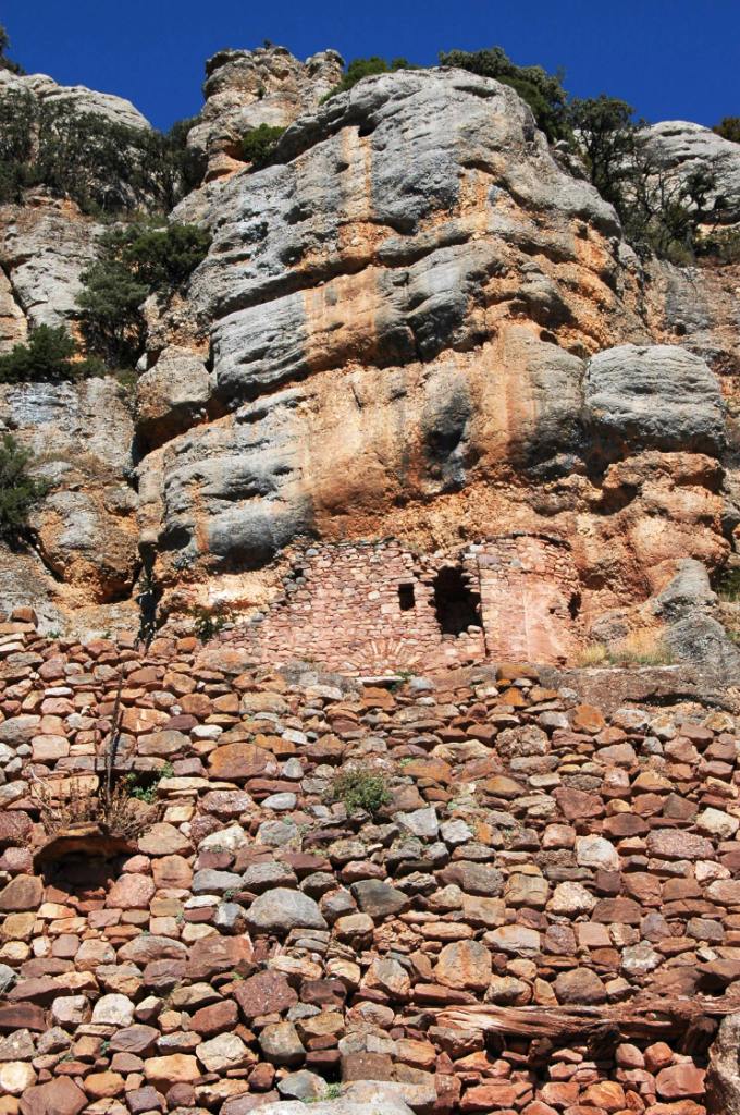 El cingle, que el limitava quasi per tot arreu, era resseguit per una muralla. L’accés devia ésser situat a l’extrem sud. Les construccions s’adossaven a aquest mur perimetral i alhora restaven arrenglerades a banda i banda d’un carrer central. En aquest poblet hi havia una vintena de cambre. Hem de pensar que, normalment, una part d’aquestes estances devien ésser destinades a fer de rebost i una altra part potser al bestiar menut o a les eines. Això ens fa pensar que segurament només hi havia uns sis o set habitatges, o poc més.