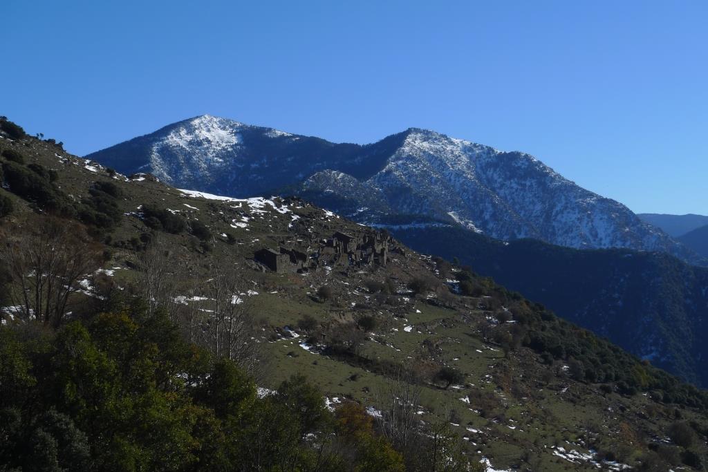 Una petita cabana de pastors a la part alta de la serra ens serveix de resguard per a realitzar una pausa sota la benèvola presència del sol. Quan el vent no bufa, gairebé que sembla que faci calor. És una sensació fictícia, ja que fins on arriba la vista tota la muntanya està submergit sota temperatures inferiors als zero graus. Com sempre, el sol d’hivern és amable, suau, suavíssim. Gairebé absent, si no fos perquè tot ho banya amb la seva magna lluminositat.