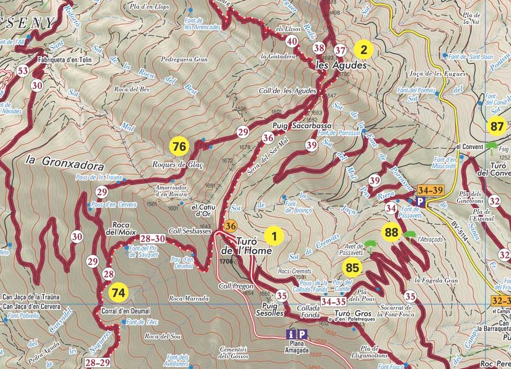 Punts de referència: * TURO DE L’HOME * COLL SESBASSES * TURÓ DEL CATIU D’OR * PUIG SACARBASSA * COLL DE LES AGUDES * LES AGUDES