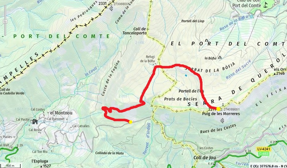 Punt de partida:Coll de Port – Refugi de Coll de Port. 1.670 metres.