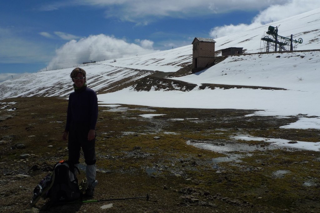Descens: Desfer les passes fins a la cota 2.450 i davallar directament seguint la línia dels teleesquís abandonats i les antigues pistes d’esquí fins als edificis en runes de la cota 1.900 metres.